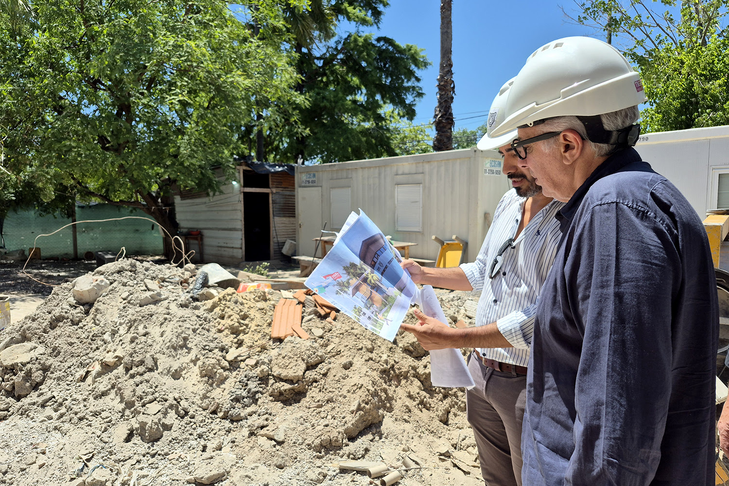 Actualmente se están realizando revoques en las mamposterías interiores y movimiento de suelo para la construcción de la rampa, escalera y gradas en el lugar. Esta obra duplicará la capacidad actual que tienen los vestuarios ya existentes.