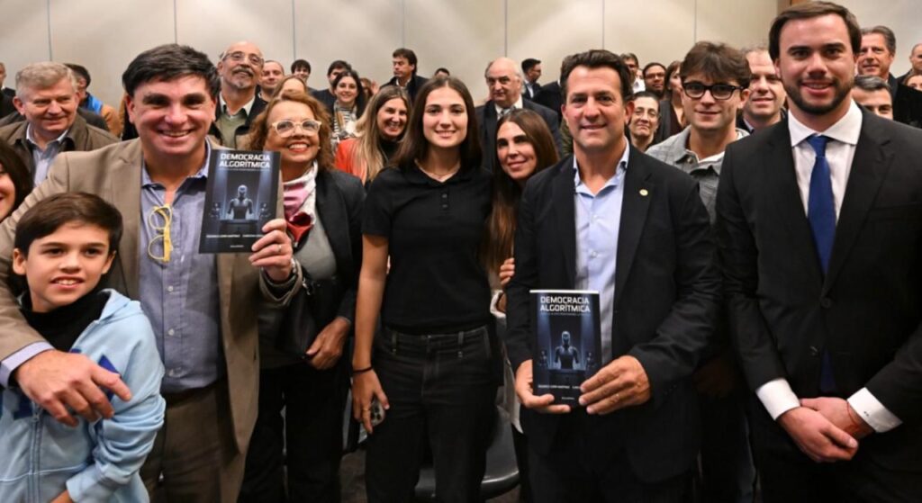 El secretario administrativo de la Legislatura porteña Christian Gribaudo, presentó su libro “Democracia Algorítmica”, junto al vicerrector de la Universidad del Este (UDE), Federico Cerri Martínez. El evento tuvo lugar en la Sala D.F. Sarmiento en el marco de la 50ª edición de la Feria del Libro, ante la presencia de lectores, vecinos de la ciudad y dirigentes políticos. También contó con la presentación del subsecretario de Inversiones de la Ciudad de Buenos Aires, Augusto Ardiles; y la moderación del analista político , profesor titular de la carrera de ciencias políticas de la UBA y director del centro RA, Luis Tonelli.